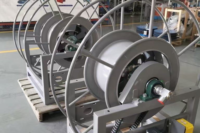 The primary application of a marine hose reel in this context is to reduce manual handling, minimize hose wear, and improve operational safety. The reel ensures that hoses are neatly coiled and protected when not in use, preventing kinks, damage, or tangling. During bunkering, the reel allows for smooth extension and retraction of the hose with minimal effort, often utilizing motorized or hydraulic systems for enhanced efficiency.